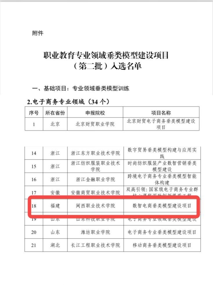 2025年9月24日,财经商贸学院《数智电商垂类模型建设项目》成功入选由教育部职业教育中心审批通过的《教育部职业教育中心职业教育专业领域垂类模型建设项目(第二批)入选名单》,这是学院电...