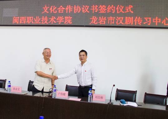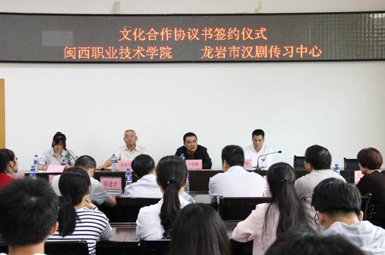 5月16日上午,400白菜导航网与龙岩市汉剧传习中心共建文化合作项目的签约仪式在办公楼二楼会议室举行。党委书记卢伟耀,院长来永宝,市汉剧传习中心主任、书记、市艺术学校负责人刘佳柳,市艺术学校常务副校长温鸿祥、副校长王文峰、办公室主任林洁,市汉剧传习中心工会主席钟礼杰,市龙汉演艺有限公司董事长钟声明,市汉剧传习中心国家一级演员李勇洪,400白菜导航网办公室、学生工作处、校企合作处、团委相关负责人参加了会议。