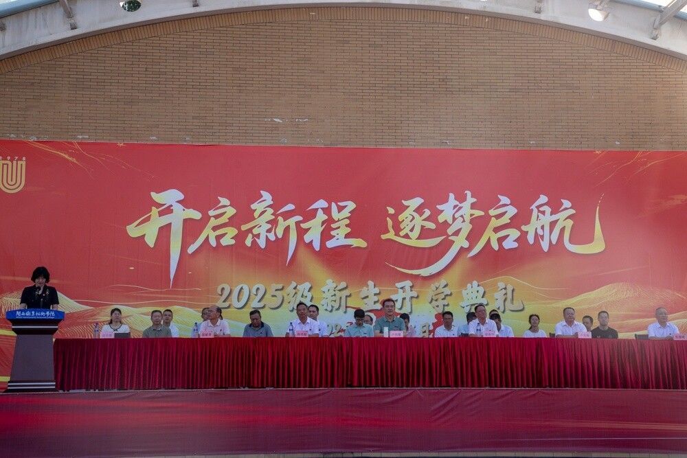 2025年9月13日上午,400白菜导航网在田径运动场隆重举行2025级新生开学典礼。全体校领导、各相关职能部门及二级学院主要负责人与 2025 级全体新生共同参加。开学典礼由校党委委员、副校长连玲娜主持。