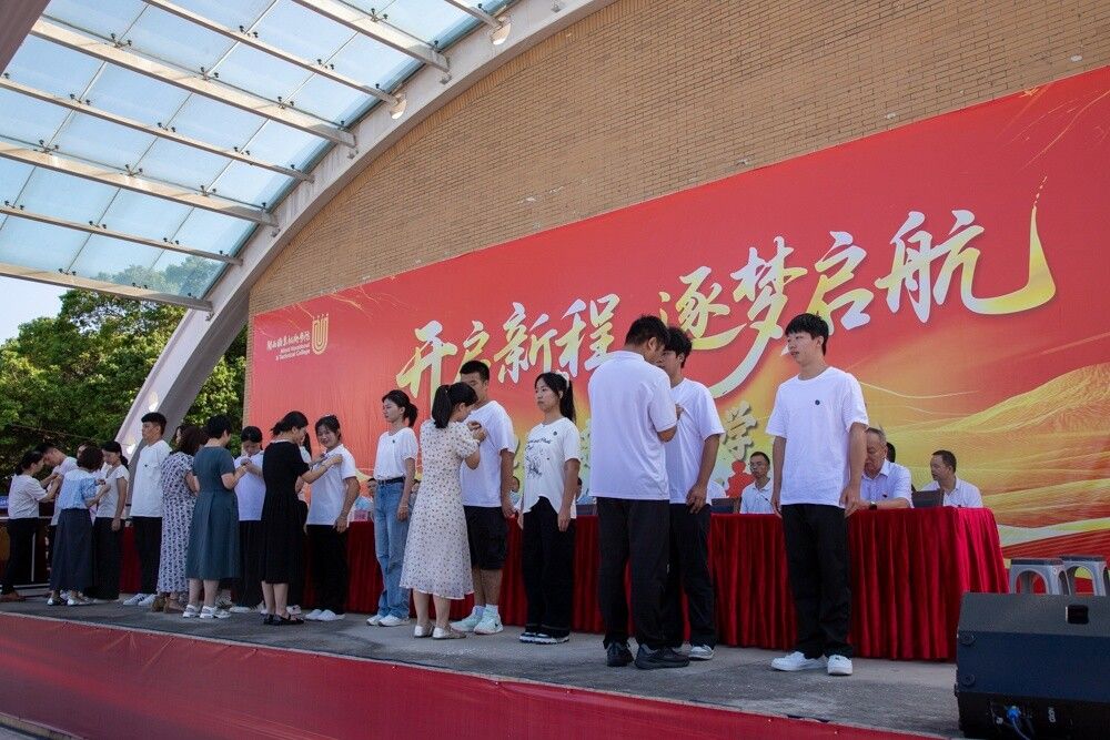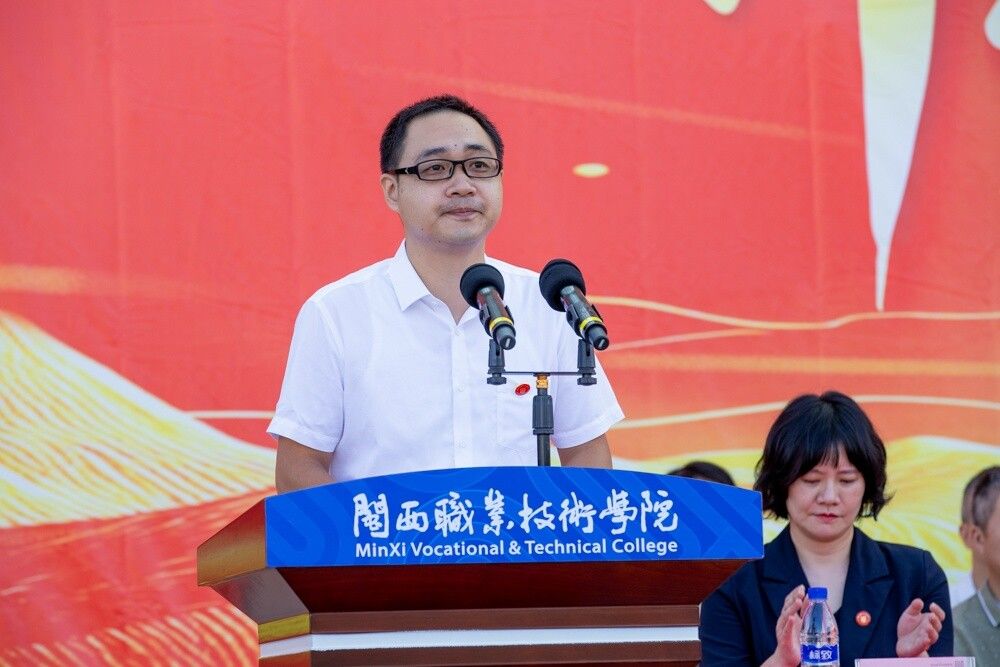 开学典礼上,2024级同学表演了歌曲串烧《追光者》、《奔跑》、《每天满满正能量》等热场节目。教师代表、老生代表、新生代表分别发言,表达对闽大的热爱之情和对未来的热切憧憬与向往。