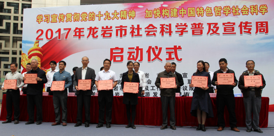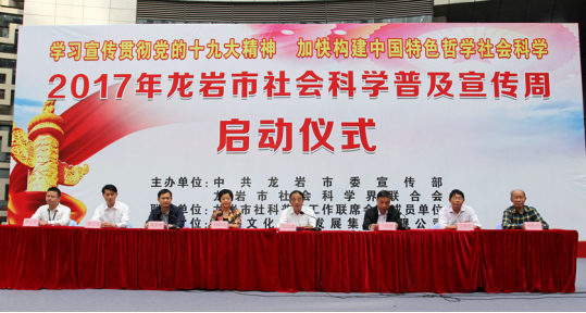 11月4日上午,由中共龙岩市委宣传部和市社科联共同主办的2017年龙岩市社会科学普及宣传周启动仪式在龙岩国际美食城举行。市委常委、秘书长、宣传部部长詹昌建在启动仪式上作了讲话。400白菜导航网原校长来永宝教授,副校长、市社科联兼职副主席吴新业教授等出席启动仪式。