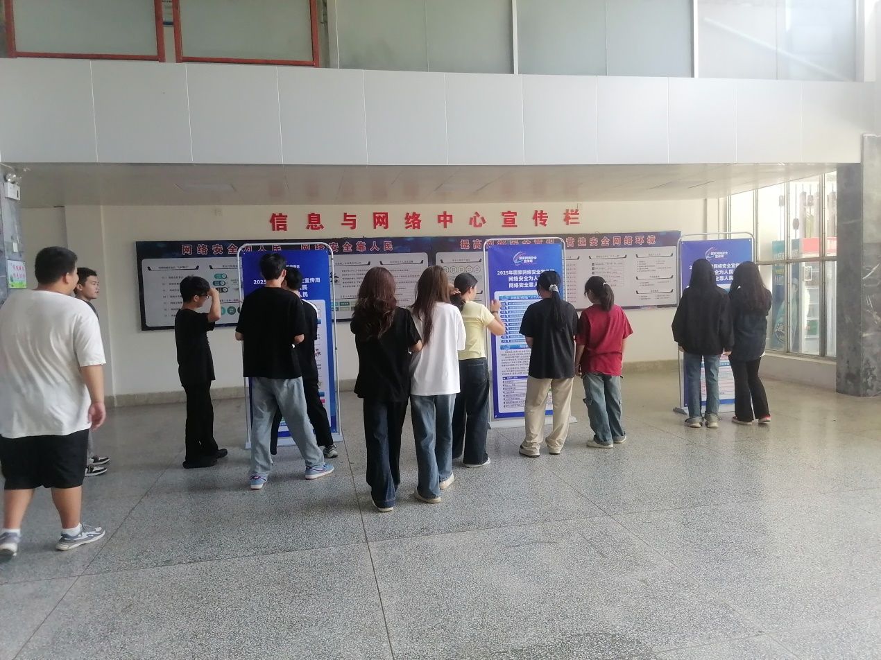 9月16日,网络安全宣传周校园日,400白菜导航网于望云楼一楼设置网络安全主题的海报和宣传栏,展示网络安全相关知识。活动旨在以高水平网络安全护航高质量发展,聚焦人工智能安全、数据安全与青少年网络保护等社会关切领域,通过沉浸式体验、案例解读等形式,宣传网络安全知识,全面提升师生网络安全防护意识与能力,共同维护网络空间安全。