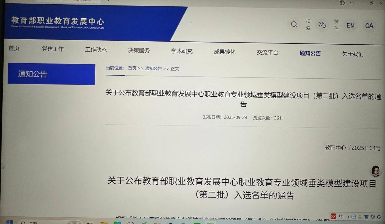 2025年9月24日,财经商贸学院《数智电商垂类模型建设项目》成功入选由教育部职业教育中心审批通过的《教育部职业教育中心职业教育专业领域垂类模型建设项目(第二批)入选名单》,这是学院电子商务专业群在省“双高”建设进程中的又一重大成果。