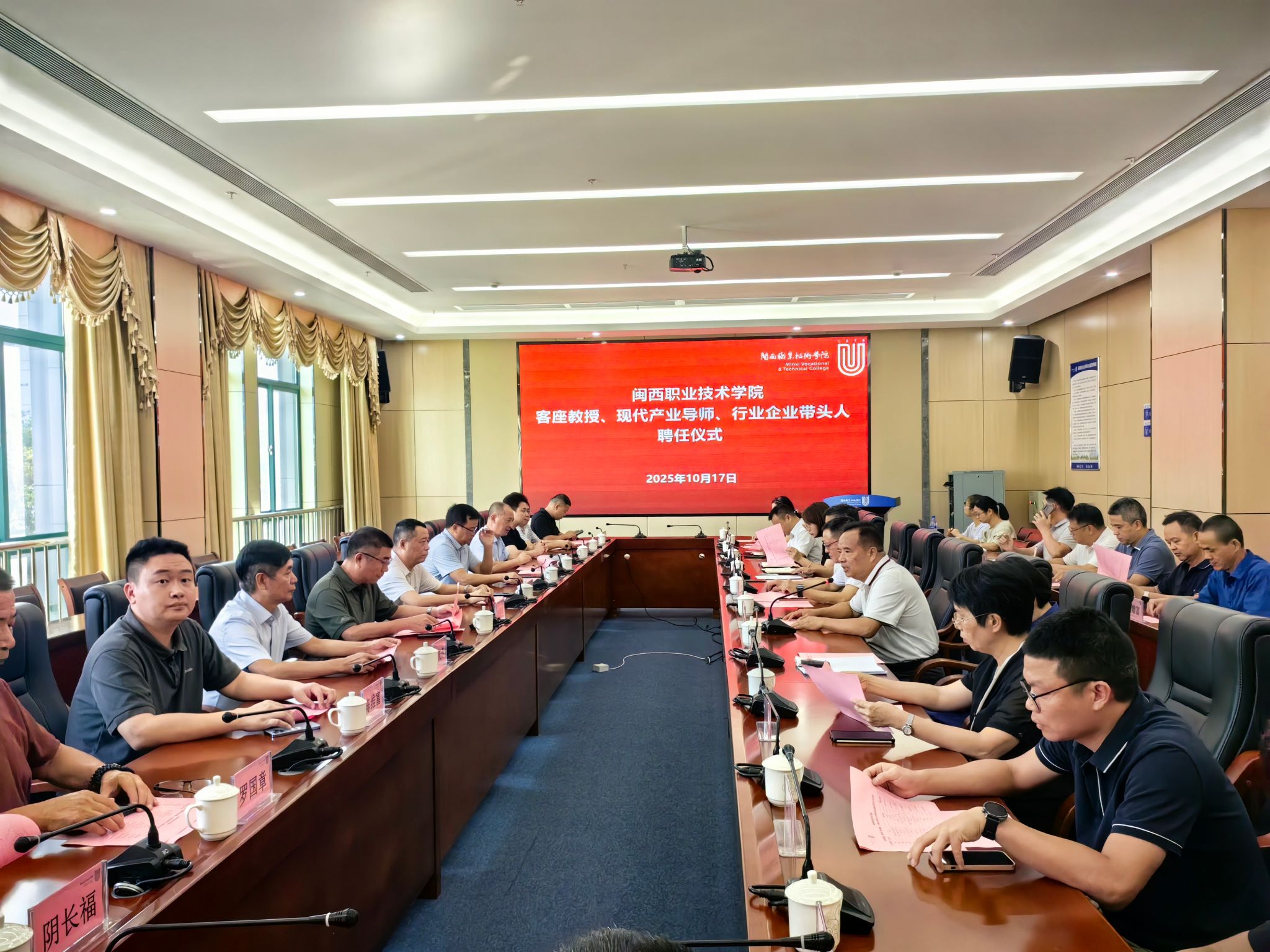 2025年10月17日下午,400白菜导航网在岩声楼二楼会议室隆重举行客座教授、现代产业导师及行业企业带头人聘任仪式。校长梁俊平出席聘任仪式,校党委副书记林伟能主持聘任仪式,18位受聘专家代表参加聘任仪式。