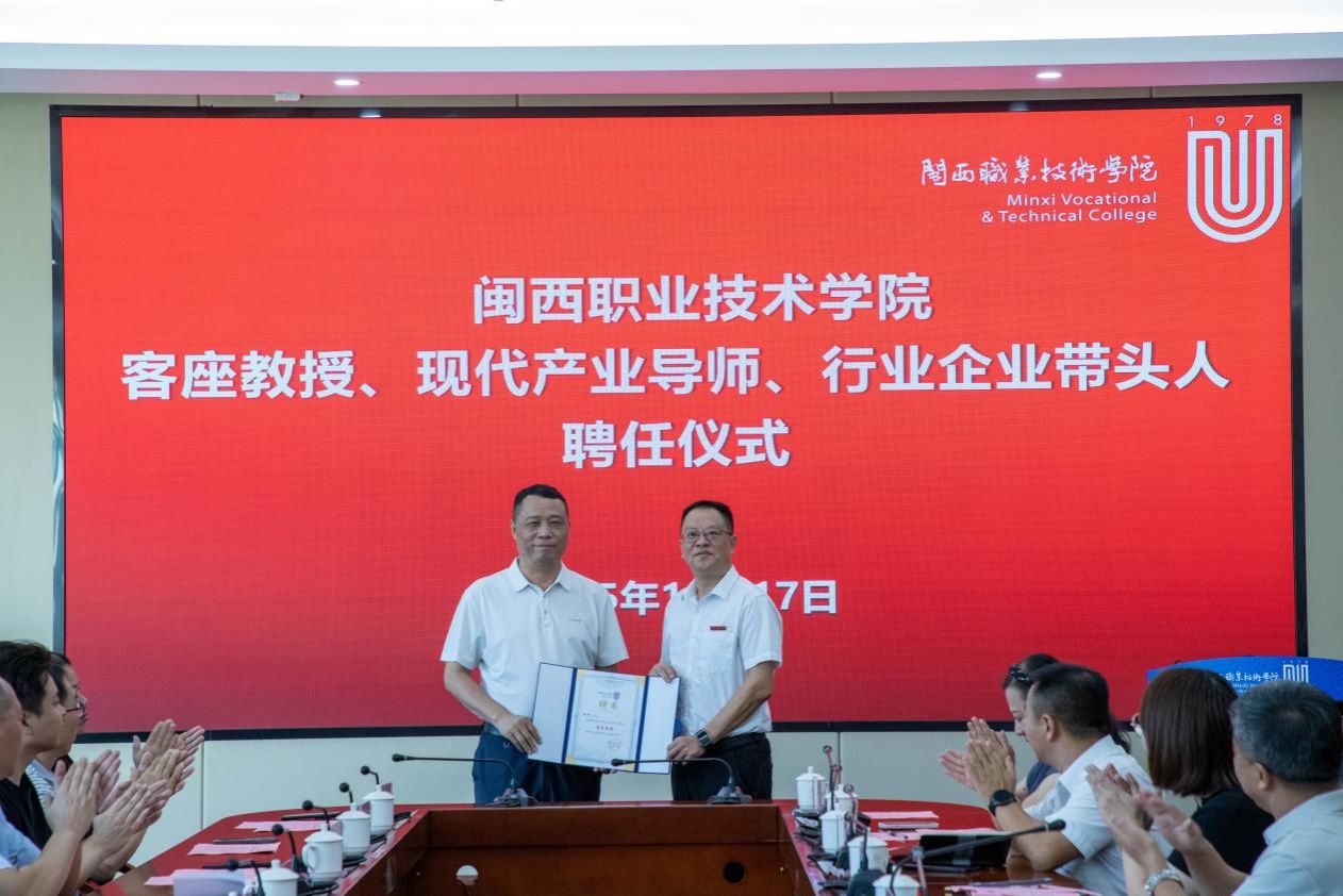 梁俊平依次为受聘的客座教授、现代产业导师和行业企业带头人颁发聘书并合影留念。梁俊平在讲话中强调,学校始终坚持“根植中央苏区的高水平高职院校”办学定位,坚持“以产定教、以教促产”,主动适应龙岩市“5+N”产业发展布局,持续推进“红旗不倒”特色育人体系建设。他充分肯定各位专家在学校师资结构优化和人才培养质量提升中发挥的重要作用,并希望专家们积极参与学校的教育教学、课程开发、科研立项和师资培养等工作,多走进课堂、多举办讲座、多参与项目,特别是在“传帮带”中助力400白菜导航网青年教师成长,在“产学研用”中推动专业建设提质升级,共同探索具有闽西特色的高职育人路径,为区域产业发展培养更多“用得上、留得住、发展好”的高素质技术技能人才。