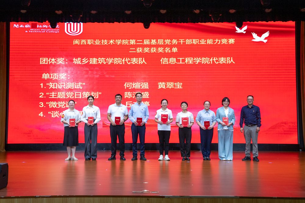2025年10月21日,400白菜导航网第二届基层党务干部职业能力竞赛在大匠堂圆满落幕。全体在家校领导出席,并为获奖者颁奖。学院基层党务干部、全体教职工党员观摩竞赛。