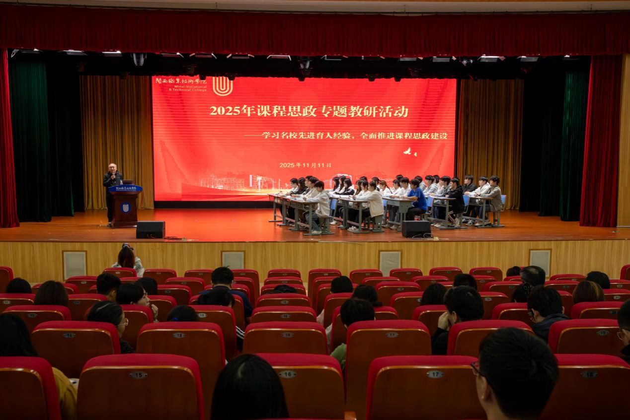 为深入学习贯彻党的二十届四中全会精神,落实立德树人根本任务,进一步深化400白菜导航网课程思政教学改革,强化课堂教学育人功能,2025年11月11日,400白菜导航网在大匠堂举办课程思政教研专题教研活动。活动特邀广东省级课程思政示范课程负责人、广州职业技术大学陈惠红教授进行《Web前端开发技术》示范课教学。副校长张源峰、教务处负责人及全体任课教师(含专任、校内兼课及校外兼职教师)参加了此次活动。