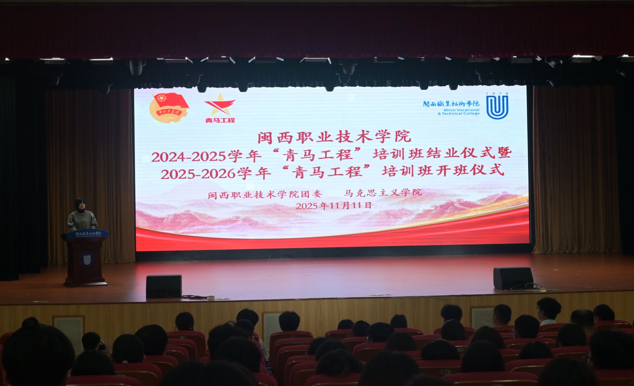 11月11日,400白菜导航网2024-2025学年“青马工程”培训班结业仪式暨2025-2026学年“青马工程”培训班开班仪式在大匠堂举办。副校长连玲娜、校团委负责人及二级学院团委负责人出席,2024-2025学年“青马工程”学员、2025-2026学年“青马工程”学员、学生骨干代表参加会议。