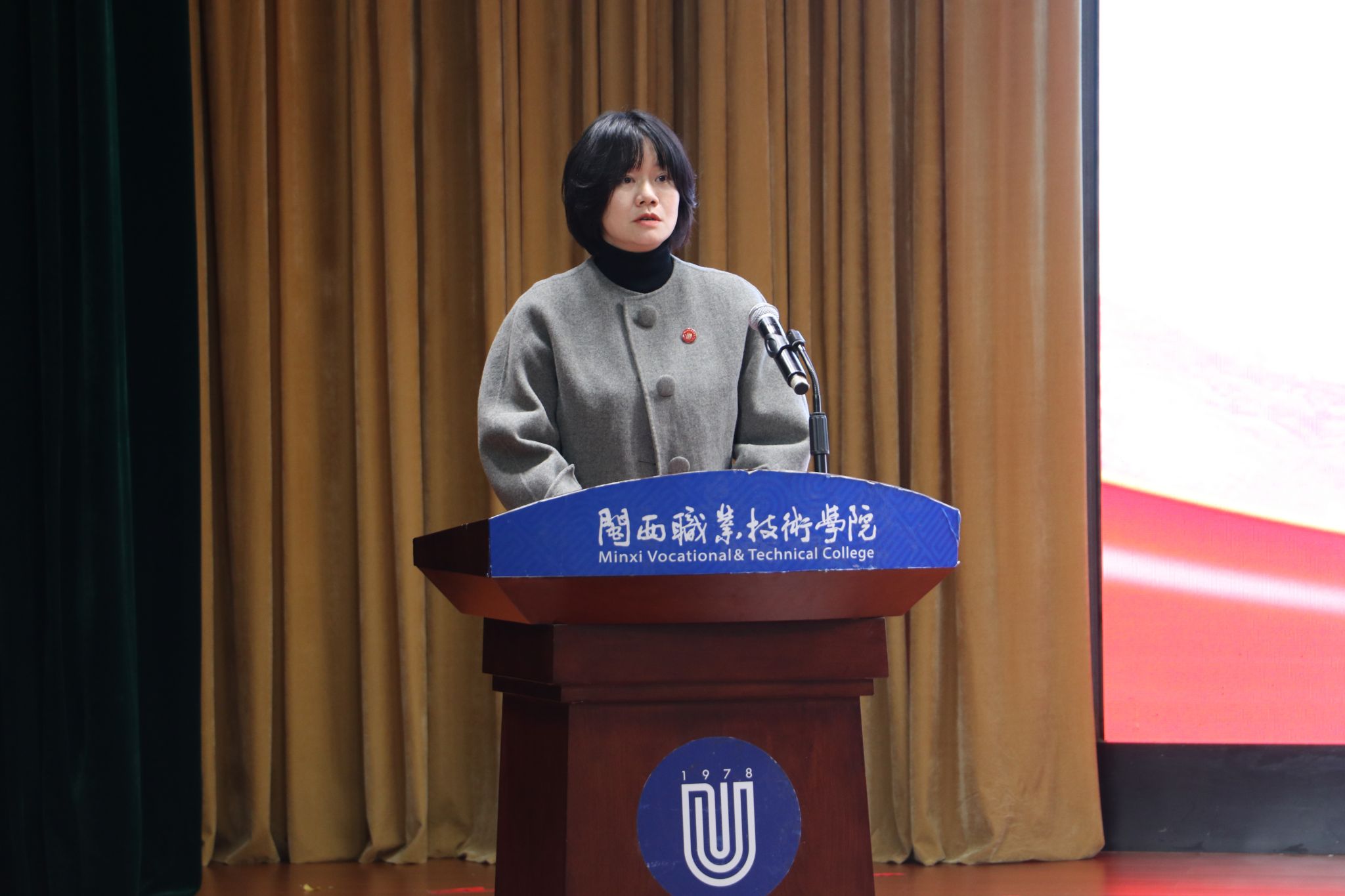 在热烈的掌声中,连玲娜副校长为2024-2025学年“青马工程”优秀学员颁发了荣誉证书。校团委负责人为2024-2025学年青马班学员赠送书籍《习近平与大学生朋友们》第一卷、第二卷。财经商贸学院蔡湘湘、谢喆喆分别代表新老学员上台发言,并交接“青马工程”旗帜。