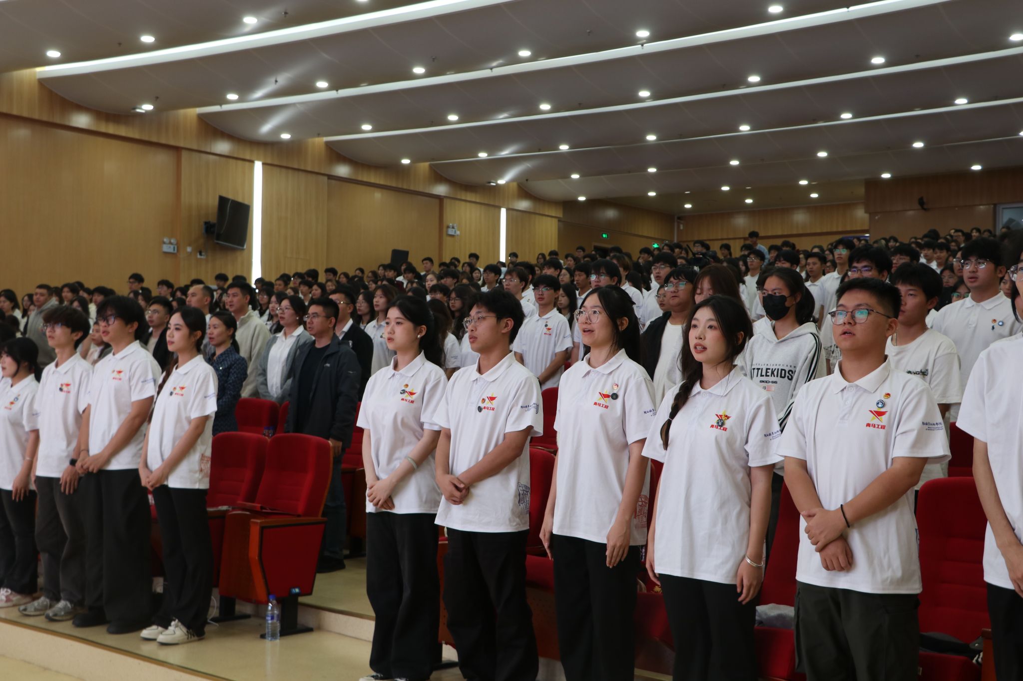仪式结束后,校党委书记卢伟耀以《唱响时代主旋律 赓续红色血脉》为题为新学员上专题思政课。卢伟耀书记结合原创红色歌曲《一起红起来》的创作来源和创作心得,引导学员们将个人理想融入国家发展大局,在实践与学习中不断淬炼信仰,让青春在为祖国、为人民的奉献中焕发出绚丽光彩。