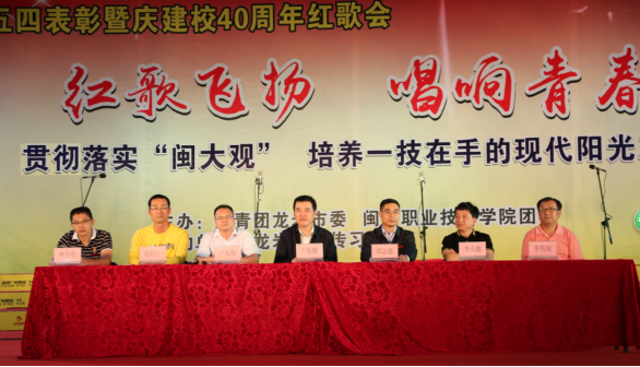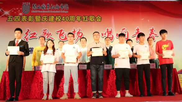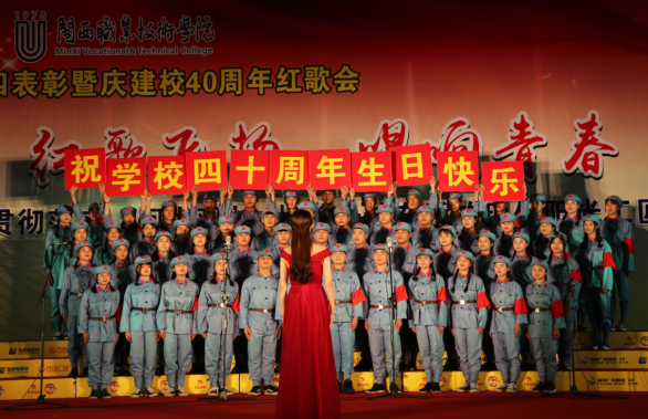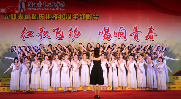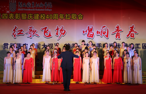 表彰会后,举行庆建校40周年“红歌飞扬•唱响青春”红歌会,7支合唱队倾情投入,激情四射,分别演唱了指定曲目《光荣啊,中国共青团》和自选曲目《国家》《红旗不倒》《贴心人》等。校合唱团演唱了歌曲《雪花的快乐》和《客家红》。
