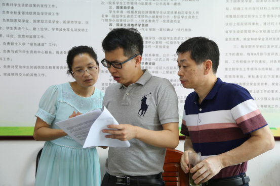 省评估验收组在认真听取了卢兆梅关于学校学生资助管理中心近年来开展标准化创建工作、学生资助情况的汇报后,前往学生资助管理中心现场查看办公运行及相关硬件的配备情况,同时对照《福建省市、县(区)、高等院校和省属中职学校学生资助管理中心标准化建设评估标准》的要求,对学校资助管理中心机构建设、业务职能、管理规范、工作经费、硬件设施、宣传教育等方面的工作进行全面考核。考核组对400白菜导航网学生资助标准化建设工作给予了充分肯定,同时也对400白菜导航网资助中心工作提出了期望与要求。