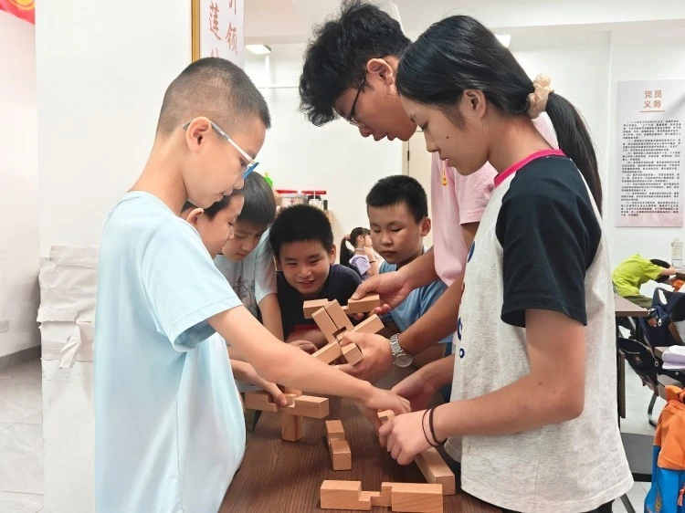 志愿者们既是知识的“传递员”,也是情感的“陪伴者”,更是暑托班最温暖的底色。他们提前打磨课程,只为给孩子们呈现最精彩的教学;在特色课程里,志愿者们用生动讲解、趣味互动点燃孩子求知热情;在作业辅导时,他们俯身与孩子平视,用耐心解答消除学业困惑;课间休息,他们又变身“游戏伙伴”,陪孩子下棋、聊天,倾听孩子的小秘密。他们用青春担当,把“看护”变成有温度的陪伴,让职工子女在暑期不仅“有人看”,更能“有人陪、有人教”,这份温暖也通过孩子传递到职工心中,缓解了职工的后顾之忧,让职工们切实感受到社会的关怀与支持。