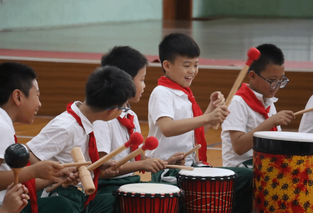 对于小学生,活动充满了童趣与启蒙。通过团体鼓圈活动奏响红色旋律,将情绪管理与合作意识融入演奏,潜移默化地在孩子们心中播下爱国、勇敢、合作的种子,初步培养他们的规则意识和同伴交往能力。