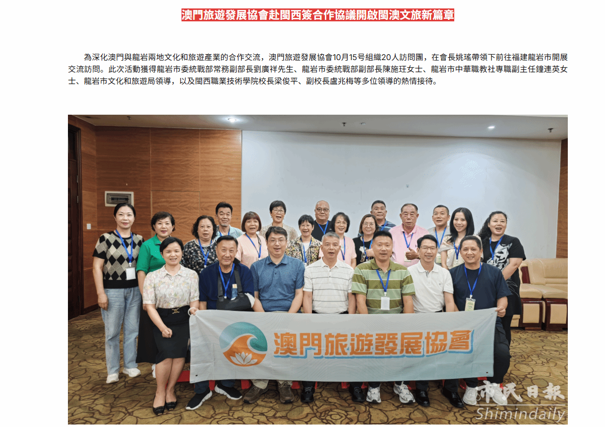 作者:澳门旅游发展协会 编辑:宣传部 来源:澳门市民日报 发布日期:2025-10-16 阅读: