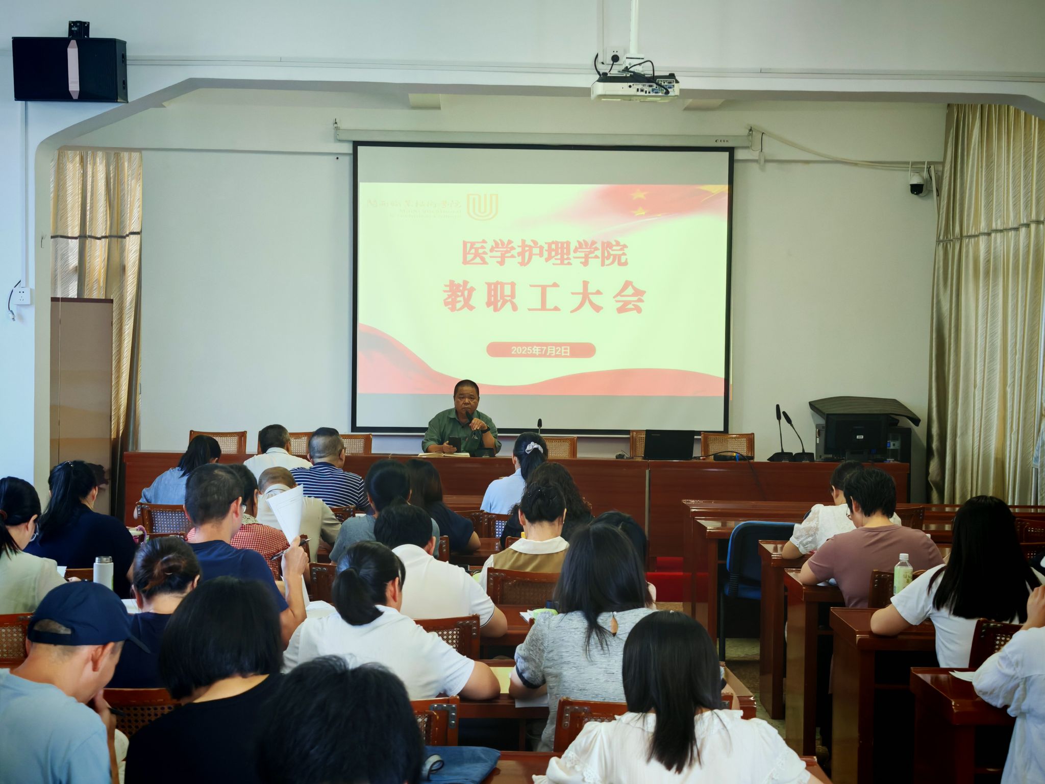 7月2日下午,医学护理学院在天马校区五楼会议室召开期末教职工大会,学院党政班子成员、全院教职工参加会议,会议由院长曹文元主持。