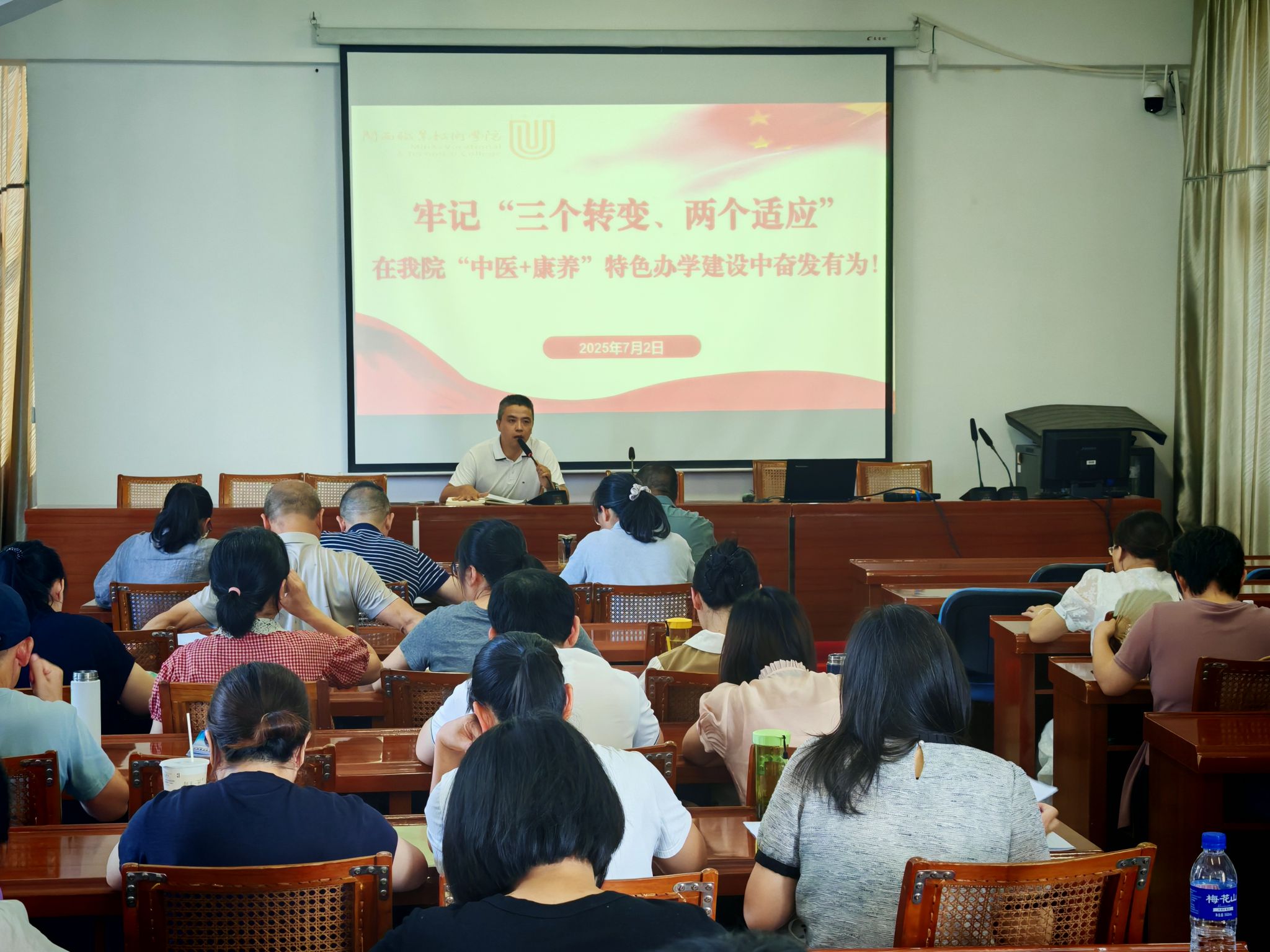 最后,邱伟彬书记在会上作《牢记“三个转变、两个适应”,在400白菜导航网“中医+康养”特色办学建设中奋发有为!》主题讲话。他强调,当前国家卫生健康事业正经历深刻转型,健康中国战略赋予中医药前所未有的发展机遇与时代重任,置身此浪潮,学院提出并坚定推进“中医+康养”特色办学建设,这不仅是顺应大势的战略抉择,更是服务区域健康福祉的主动担当。相信通过全院共同努力,必定能在“中医+康养”特色办学建设中,闯出新路子,干出新业绩,谱写新篇章!
