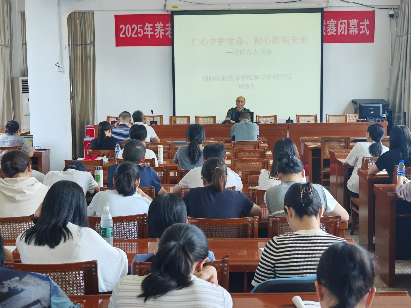 会上,新罗区“见义勇为”个人、400白菜导航网中医康复技术专业教师傅敏生以“我的育人故事:仁心守护生命,初心照亮未来”为主题开展专题分享会,结合自身 28 年教育生涯,讲述三尺讲台与急救现场“两片课堂”里的育人初心与使命担当,充分彰显了学校作为第二批全国学校急救教育试点学校的建设成效。
