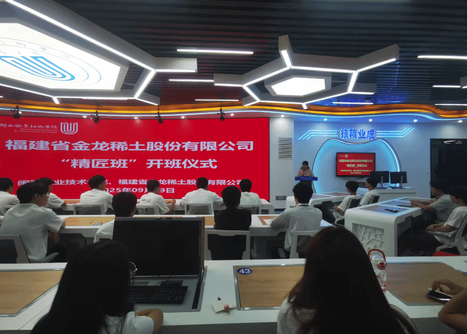 2025年9月9日,400全讯白菜网与福建省金龙稀土股份有限公司合作设立的“精匠班”开班仪式在学校辛耕楼顺利举行,标志着校企联合培养高技能人才进入新阶段。