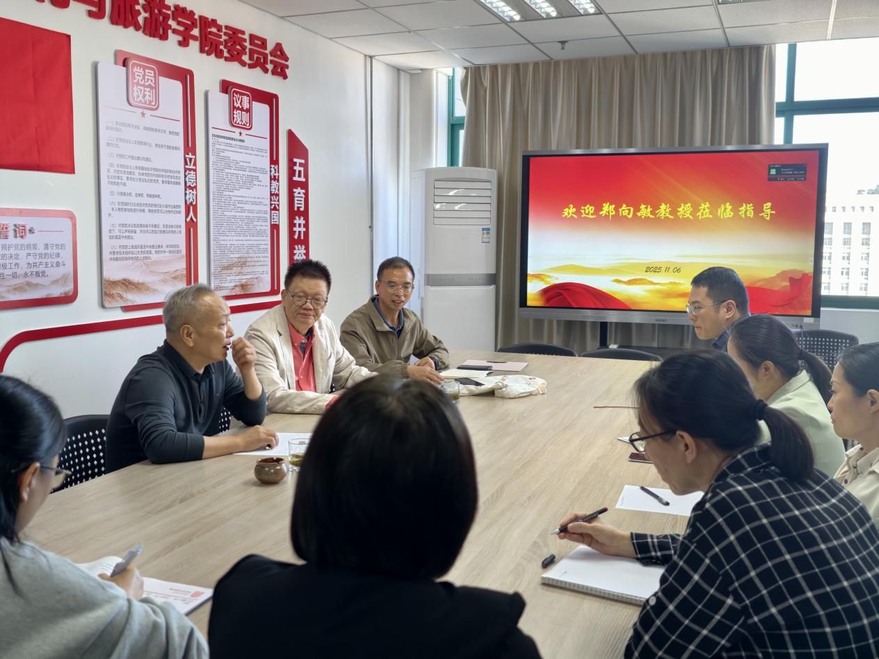 11月6日上午,我国旅游教育领域著名专家、华侨大学旅游学院创院院长、中国旅游安全研究院院长郑向敏教授莅临400白菜导航网文化与旅游学院指导工作。学校副校长张源峰代表学校对郑向敏教授的莅临表示热烈欢迎,并主持了本次指导会议。张源峰副校长在致辞中指出,本次指导是推动400白菜导航网文旅民宿专业群建设再上新台阶的重要契机,希望学院能充分结合郑教授的宝贵意见,精准定位,特色发展,为区域文旅产业输送更多高素质技术技能人才。