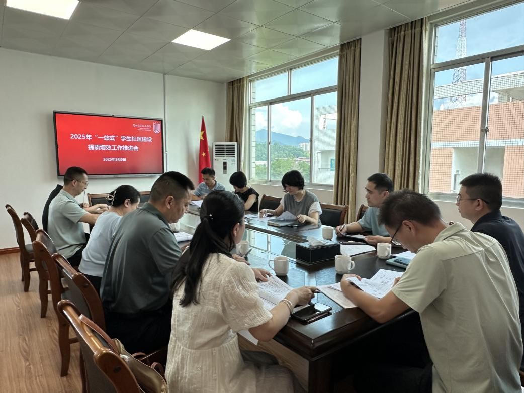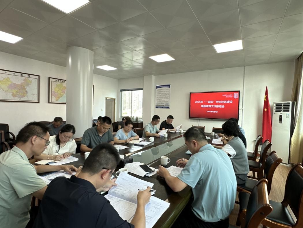 学生工作处负责人介绍了高校“一站式”学生社区建设检查和评级工作要求,对《高校“一站式”学生社区建设提质增效情况明细表(2025)》中各项任务进行了分解,与会人员就“一站式”学生社区建设情况进行反馈并提出宝贵意见和建议。