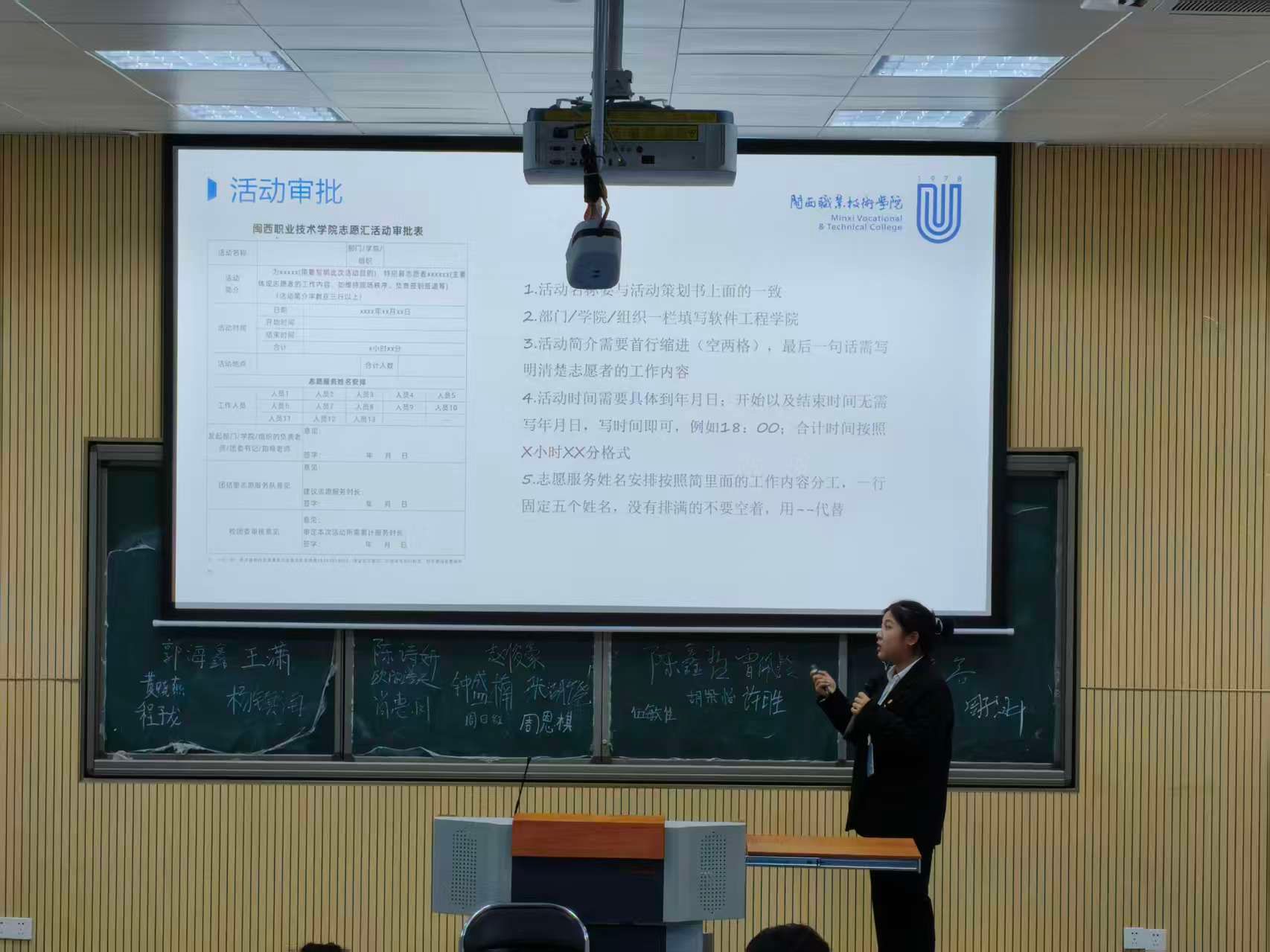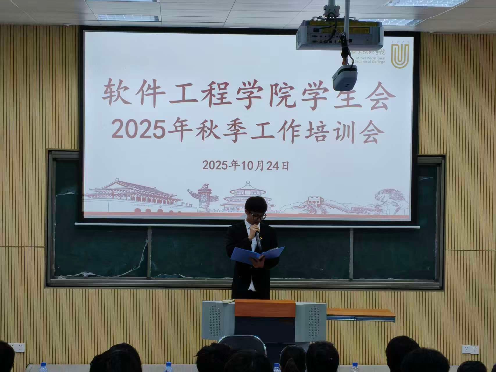 为加强组织建设,提升学生骨干的综合能力与服务效能,软件工程学院团委学生会于2025年10月24日晚成功召开秋季工作培训会。院团委李丽梅、罗惠娟老师及全体团学成员参会。