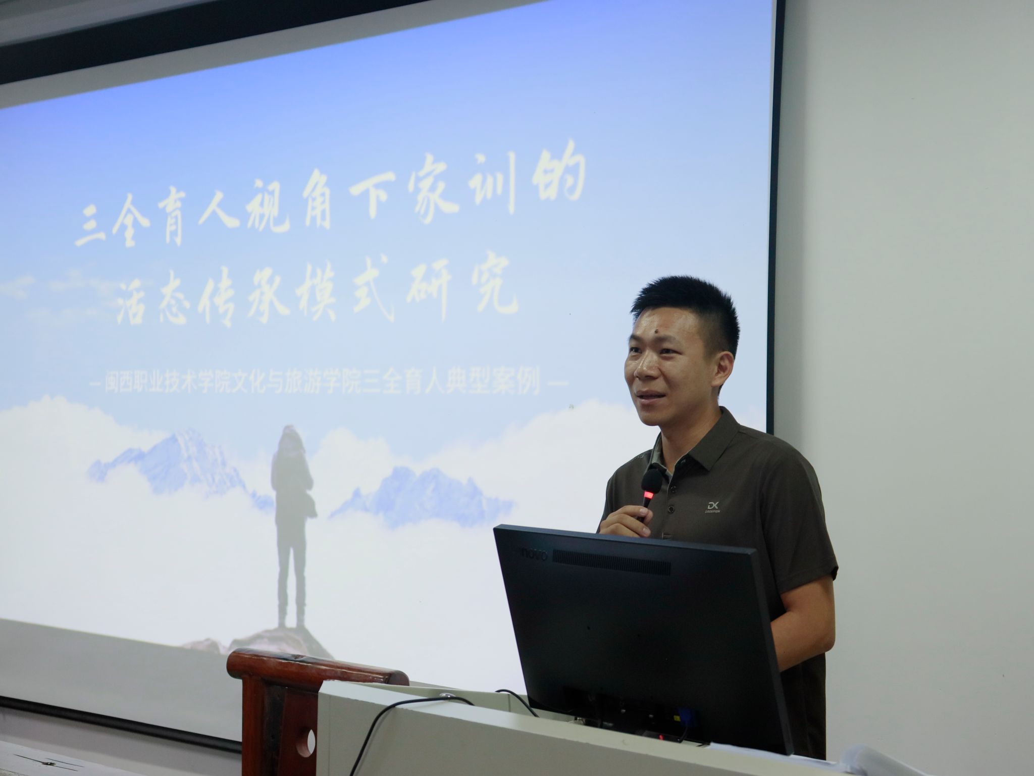 “居安思危,思则有备,有备无患”“安全是福,平安是宝”……文旅院学生工作负责人向现场介绍着文旅特色育人工作--家训文化,一句句朴实无华却又饱含深意的家训,不仅传递了家族对安全的重视,更让在场的每一个人深刻感受到了安全文化的深厚底蕴和传承力量。