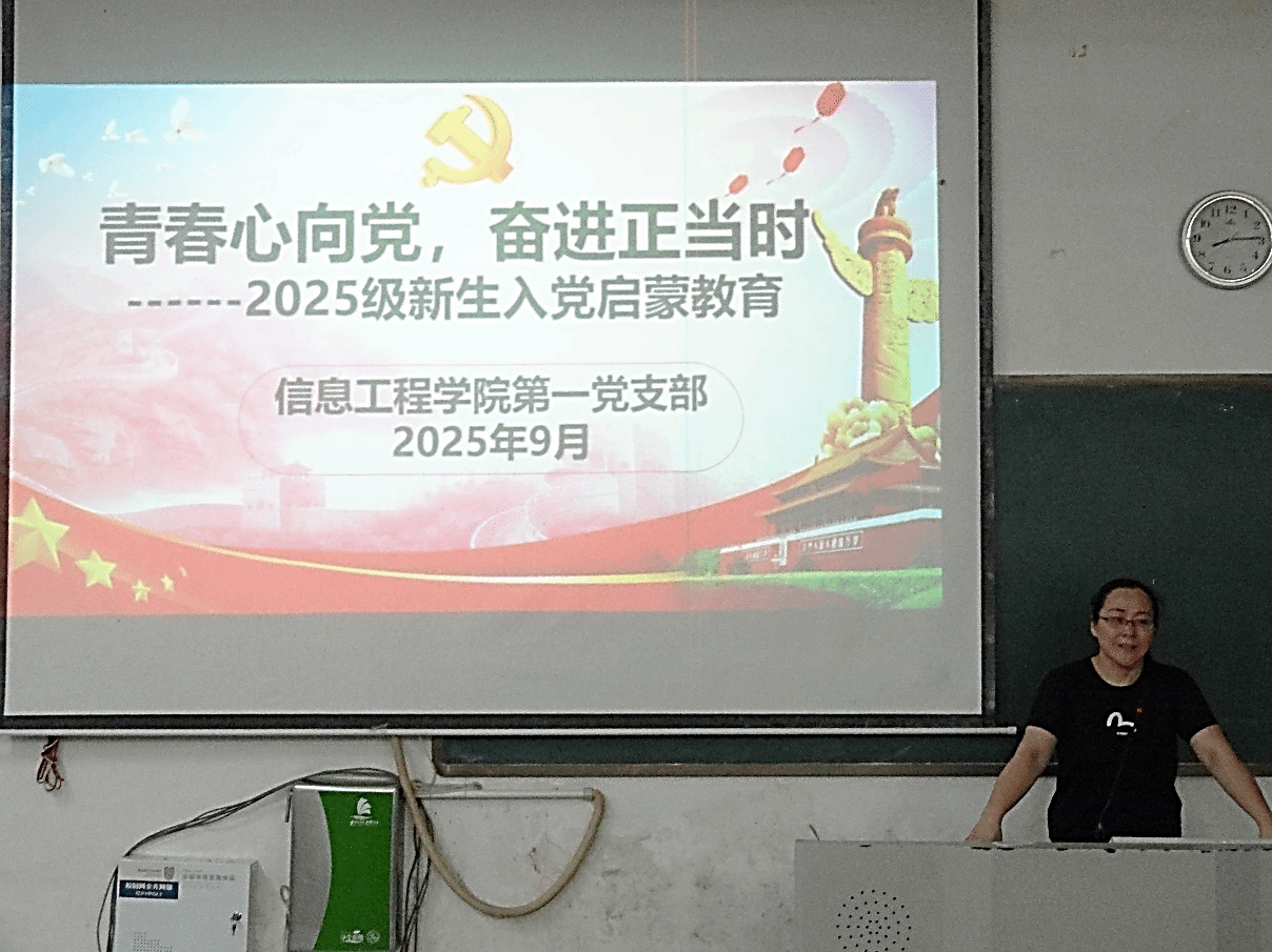 9月15日,信息工程学院第一党支部以“青春心向党,奋进正当时”为主题,面向2025级新生开展入党启蒙教育,为新生上...