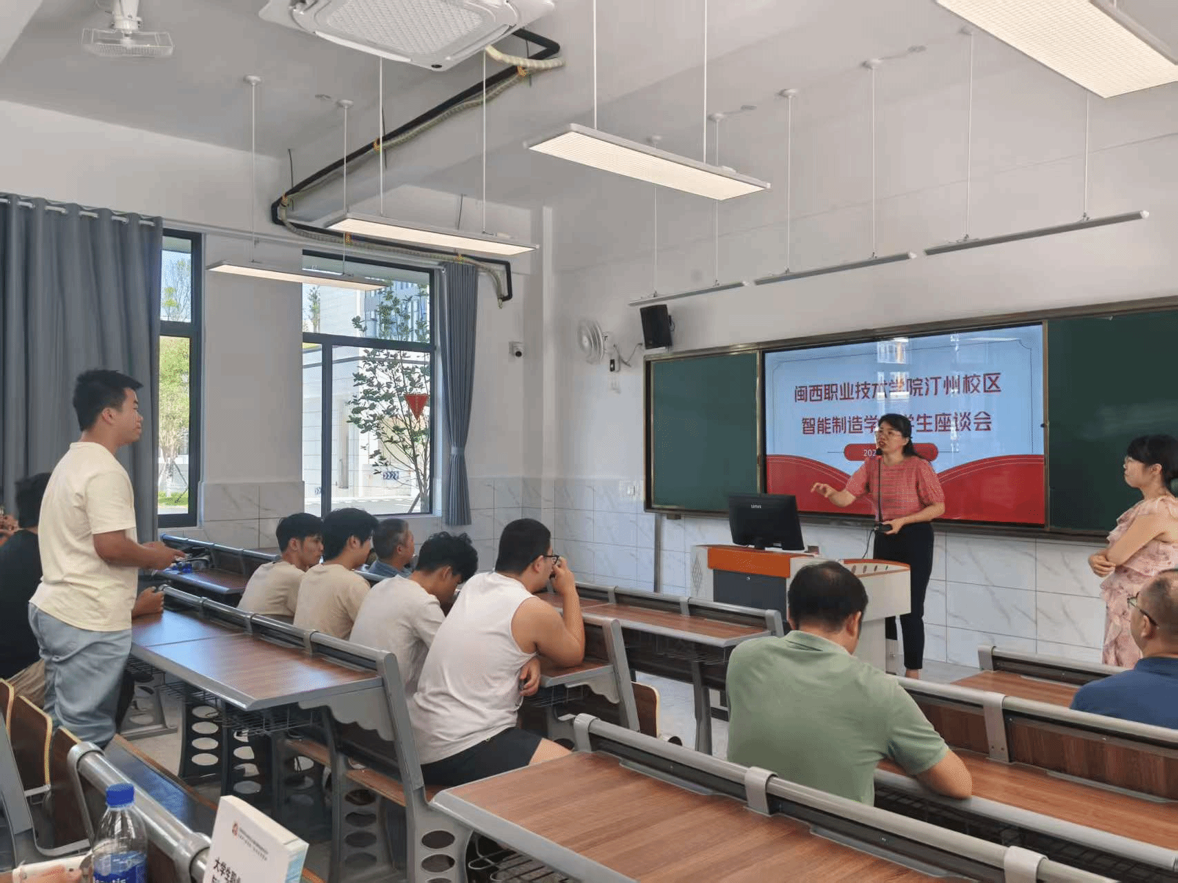 学院班子一行先后走访了学生教室、实训室和食堂,实地了解新生学习、生活环境,并与同学们亲切交谈。座谈会上,陈元招院长详细介绍了智能制造学院的专业特色、人才培养模式和就业前景。黄顺扬副院长耐心解答了同学们关于课程设置、技能竞赛、升学就业等方面的提问。