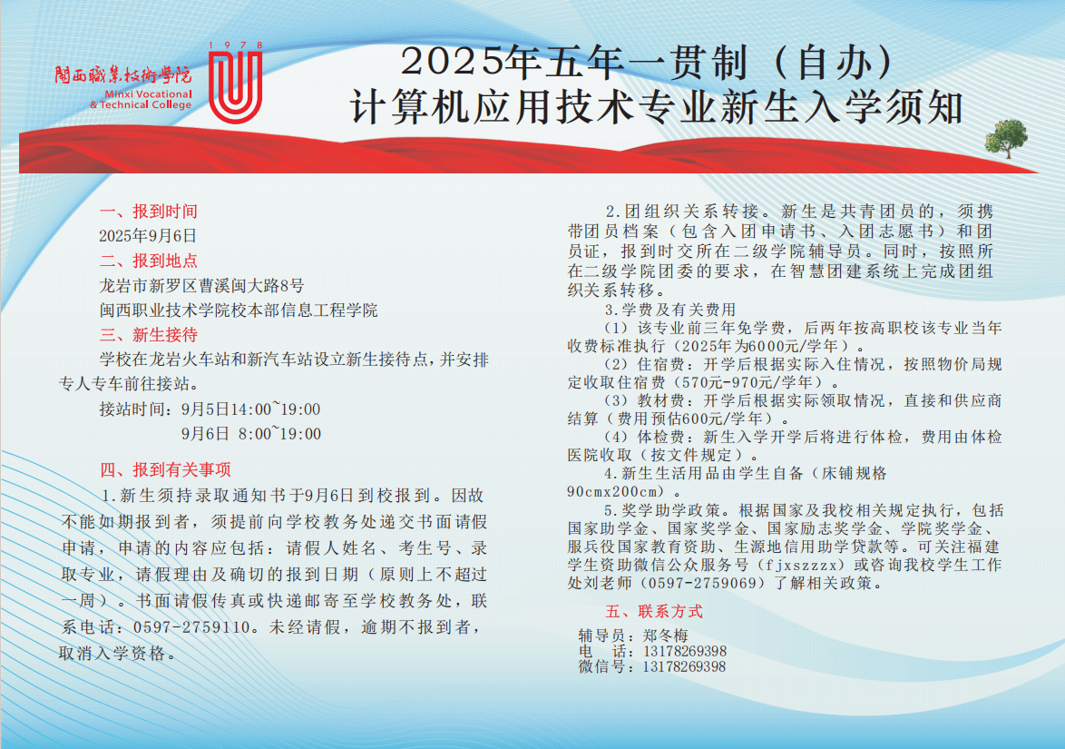 2025年400全讯白菜网五年一贯制(自办)计算机应用技术专业新生入学须知